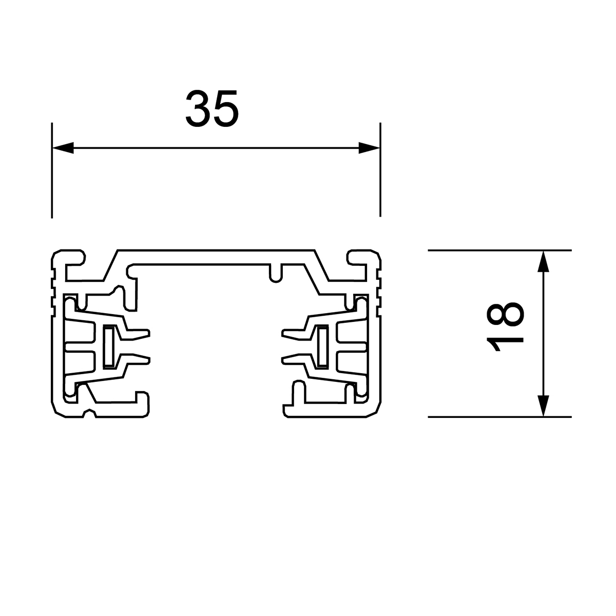 Produktgruppe: Aufbaustromschiene, Unex One, Farbe/Finish: schwarz, strukturiert, RAL-Farbe: 9005, Schutzklasse: 1, Material: Aluminium, Spannung PRI: 220-250 V, Frequenz PRI: 50/60 Hz, Max. Belastung pro Stromkreis: 16 A, Länge: 2000 mm, Breite: 35 mm, Höhe: 18 mm