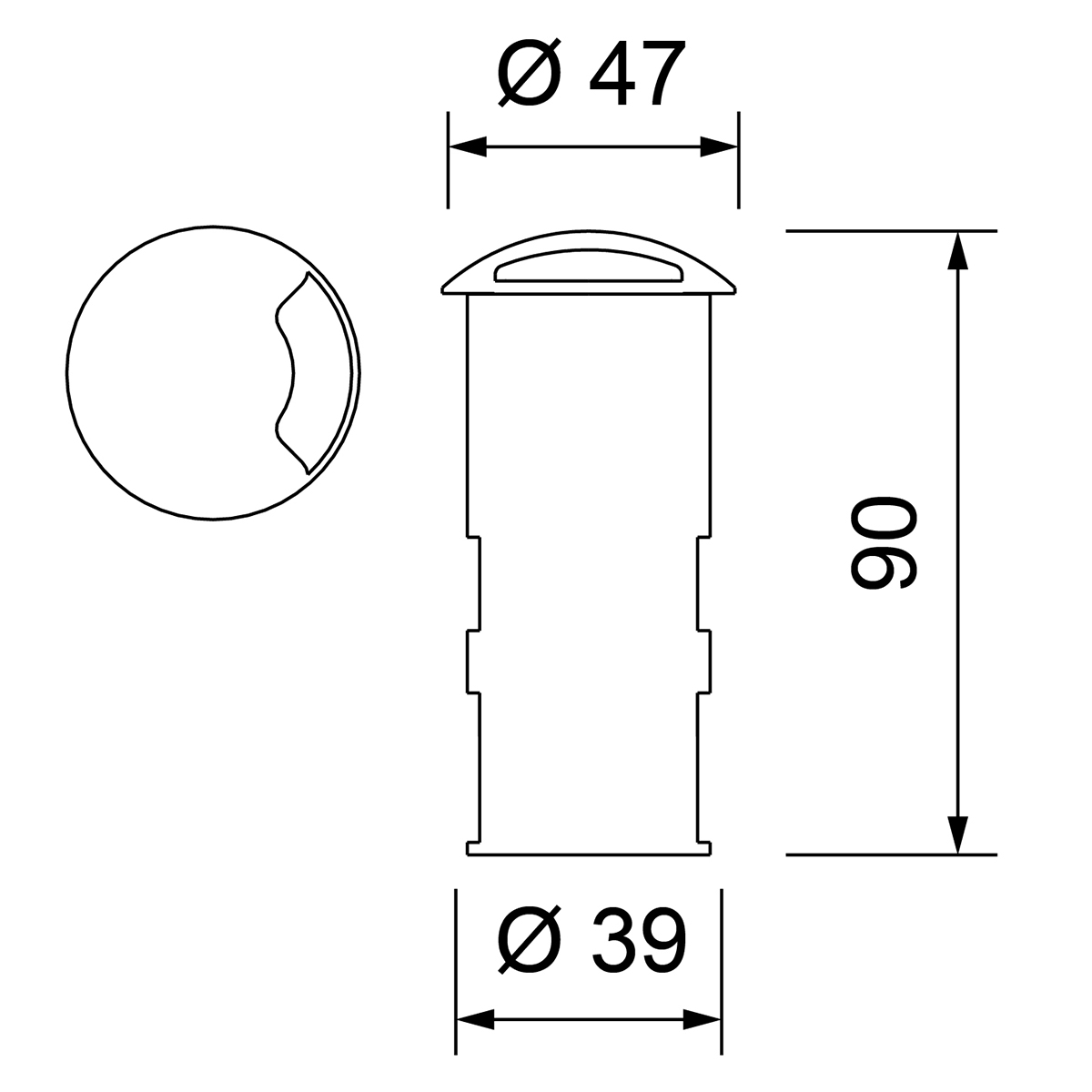 Produktgruppe: Bodeneinbauleuchte, Via One LED, Ausrichtbarkeit: starr, Treiber: exkl. Treiber, Lichtstrom: 5 lm, Leistung LED: 1.2 W, Farbtemperatur: 3000 K warmweiss, CRI: 80, Farbkonsistenz SDCM: 3, Abstrahlwinkel: 60 °, Anzahl Lichtquellen: 1, Anteil Direktlicht: 100 %, Energieeffizienzklasse: G, Lebensdauer LED: 50ʼ000h L70, Schutzklasse: 3, IP-Schutzklasse: IP65/IP67, Bestromung SEC: 350 mA, Vorwärtsspannung (min): 3 V, Vorwärtsspannung (max): 4 V, Durchmesser: 47 mm, Höhe: 90 mm, Anschlusskabel SEC, Typ: H05RN-F, Anschlusskabel SEC, Länge: 5000 mm, Anschlusskabel SEC, Querschnitt: 2 x 0.75mm²