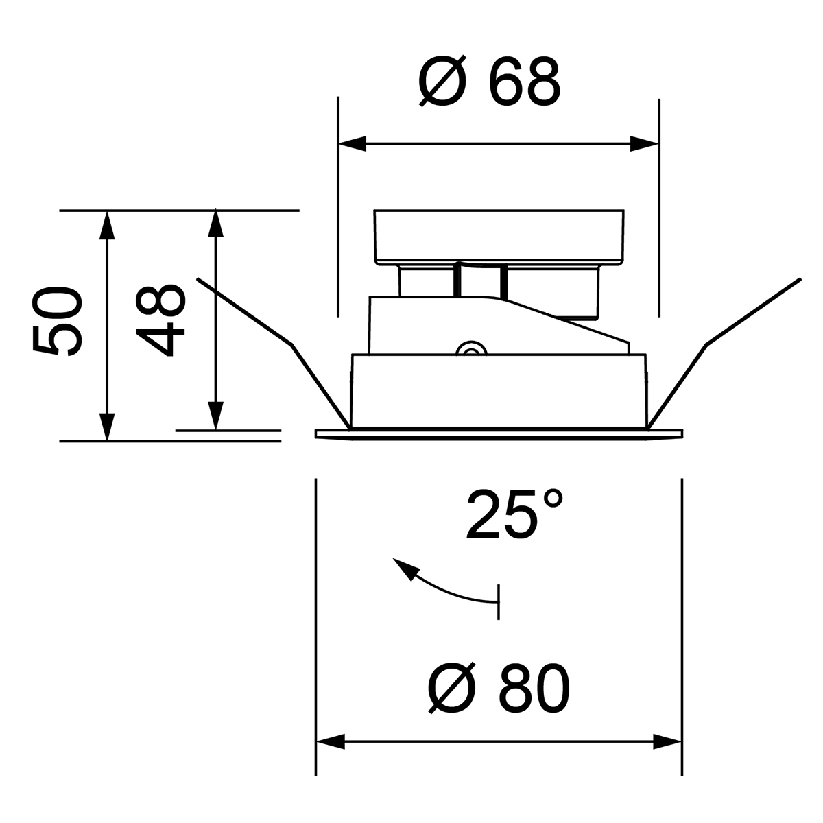 Produktgruppe: Deckeneinbauring, Mood, Ausrichtbarkeit: schwenkbar, Schwenkbar: 25°, Farbe/Finish: weiss, strukturiert, RAL-Farbe: 9003, Farbe Deko-Ring: weiss, Bemessungsleistung: max. 13 W (LED), Material: Aluminium, Durchmesser: 80 mm, Bohrloch-Ø (max): 68 mm, Höhe: 50 mm, Einbautiefe 1: 48 mm