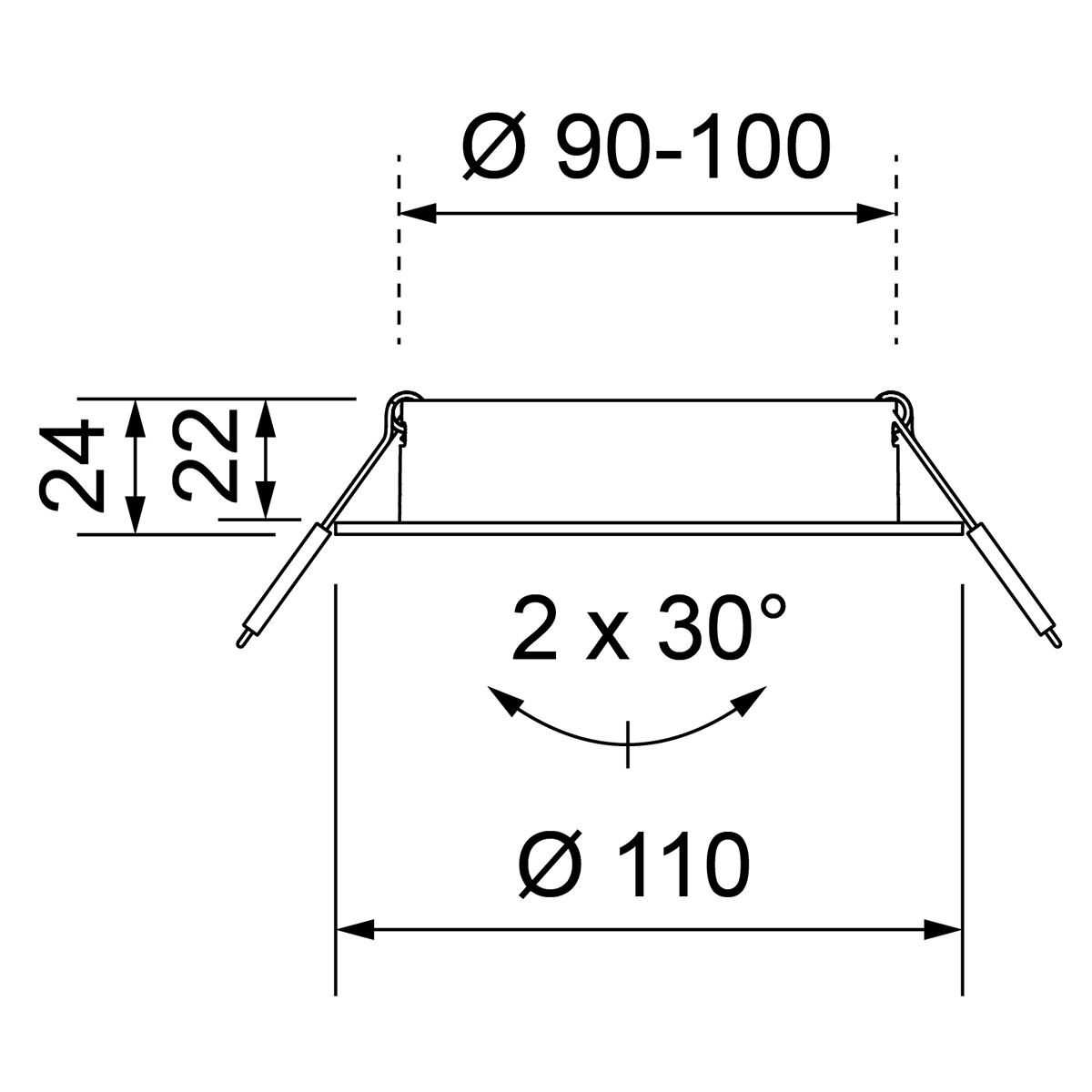 Produktgruppe: Deckeneinbauring, Twist 100 Plan, Ausführung: Bohrloch-Ø 90 – 100 mm, Sonderhinweis: mit Spannfedern, Ausrichtbarkeit: schwenkbar, Schwenkbar: 2 x 30°, Farbe/Finish: weiss, strukturiert, RAL-Farbe: 9003, Bemessungsleistung: max. 13 W (LED), Material: Aluminium, Durchmesser: 110 mm, Bohrloch-Ø (min): 90 mm, Bohrloch-Ø (max): 100 mm, Höhe: 24 mm