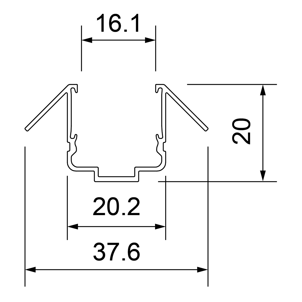 Produktgruppe: Eckprofil, Nex Flex F22 LED, Material: Aluminium, Länge: 2000 mm, Breite: 37.6 mm, Höhe: 20 mm