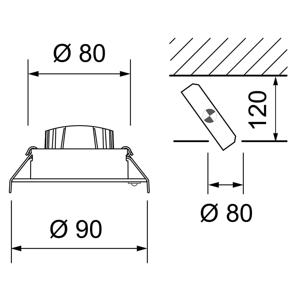 Einbau-Downlight Swing 80 Plan EL, mit RIDL 600, mit Spannfedern, Phasenab., weiss, 40°, 3000 K