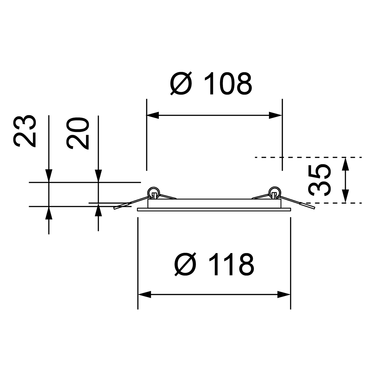 Produktgruppe: Einbau-Downlight, Takeo Round LED, Ausführung: Bohrloch-Ø 108 mm, Ausrichtbarkeit: starr, Farbe/Finish: weiss, Treiber: inkl. Treiber, Lichtsteuerung: Ein/Aus, Pst: < 1, SVM: < 0.4, Lichtstrom: 550 lm, Systemleistung: 7 W, Farbtemperatur: 3000 K warmweiss, CRI: 80, Abstrahlwinkel: 110 °, Anzahl Lichtquellen: 1, Anteil Direktlicht: 100 %, Energieeffizienzklasse: E, Lebensdauer LED: 50ʼ000h L70, Schutzklasse: 1, IP-Schutzklasse: IP20, Spannung PRI: 220-240 V, Frequenz PRI: 50/60 Hz, Bestromung SEC: 500 mA, Vorwärtsspannung (min): 11 V, Vorwärtsspannung (max): 13 V, Durchmesser: 118 mm, Bohrloch-Ø (max): 108 mm, Höhe: 23 mm, Einbautiefe 1: 20 mm, Einbautiefe 2: 35 mm
