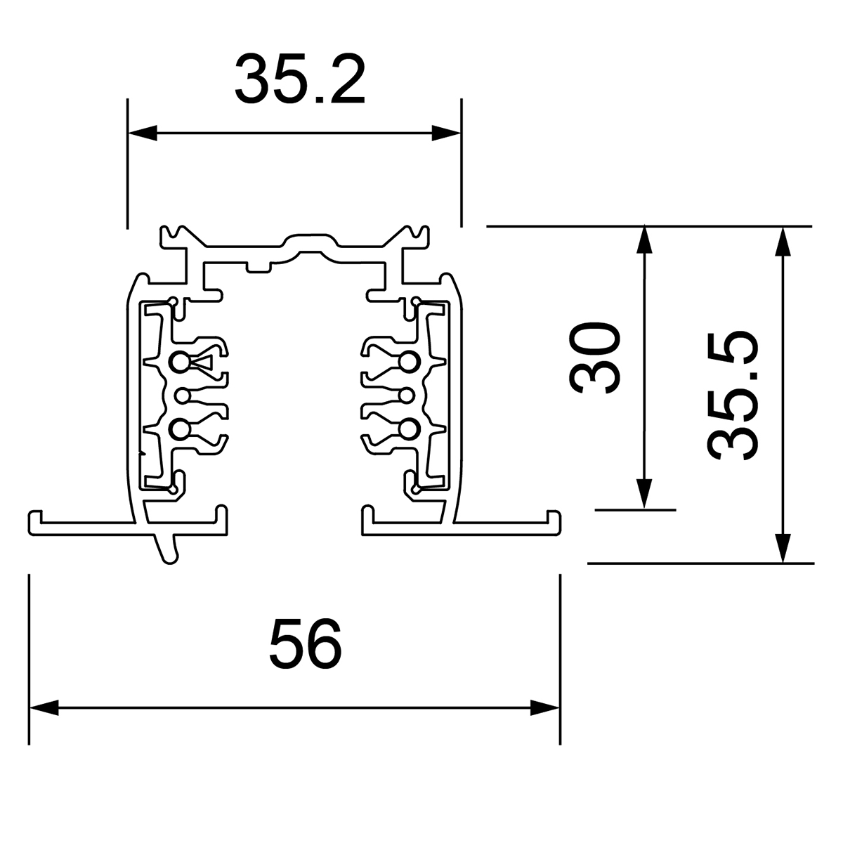 Produktgruppe: Einbaustromschiene, Unex, Farbe/Finish: weiss, RAL-Farbe: 9010, Spannung PRI: 220-250 V, Frequenz PRI: 50/60 Hz, Länge: 4000 mm, Breite: 56 mm, Höhe: 35.5 mm