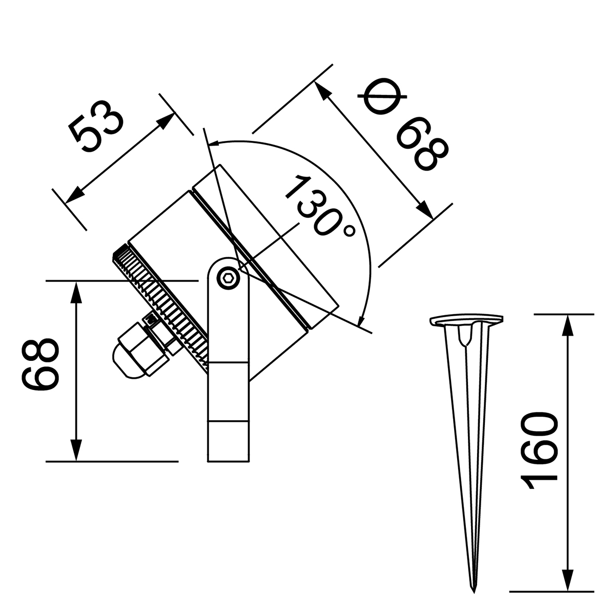 Produktgruppe: Erdspiessleuchte, Mini LED, Ausrichtbarkeit: schwenkbar, Schwenkbar: 130°, Farbe/Finish: eloxiert, Treiber: exkl. Treiber, Lichtstrom: 320 lm, Leistung LED: 3 W, Farbtemperatur: 3000 K warmweiss, CRI: 90, Abstrahlwinkel: 40 °, Anzahl Lichtquellen: 1, Anteil Direktlicht: 100 %, Energieeffizienzklasse: E, Lebensdauer LED: 50ʼ000h L70, Schutzklasse: 3, IP-Schutzklasse: IP67, IK-Schutzklasse: IK08, Material: Aluminium, Bestromung SEC: 350 mA, Vorwärtsspannung (max): 9 V, Durchmesser: 68 mm, Anschlusskabel SEC, Typ: H05RN-F, Anschlusskabel SEC, Länge: 3000 mm, Anschlusskabel SEC, Querschnitt: 2 x 0.75mm2