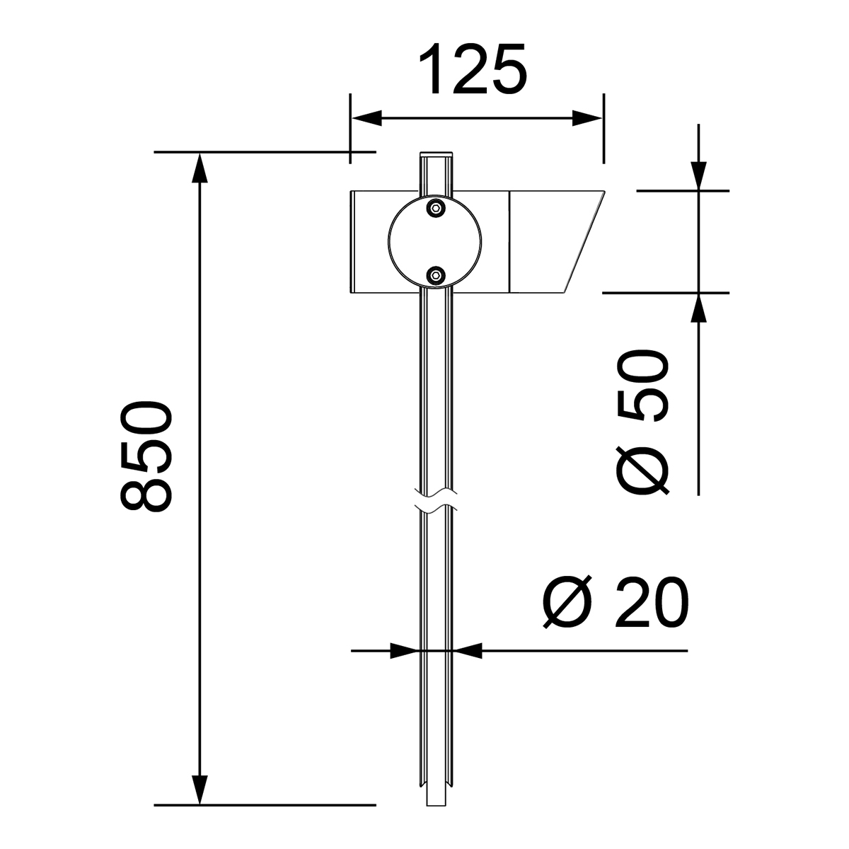 - der hohe Erdspiess ermöglicht die Beleuchtung von oben