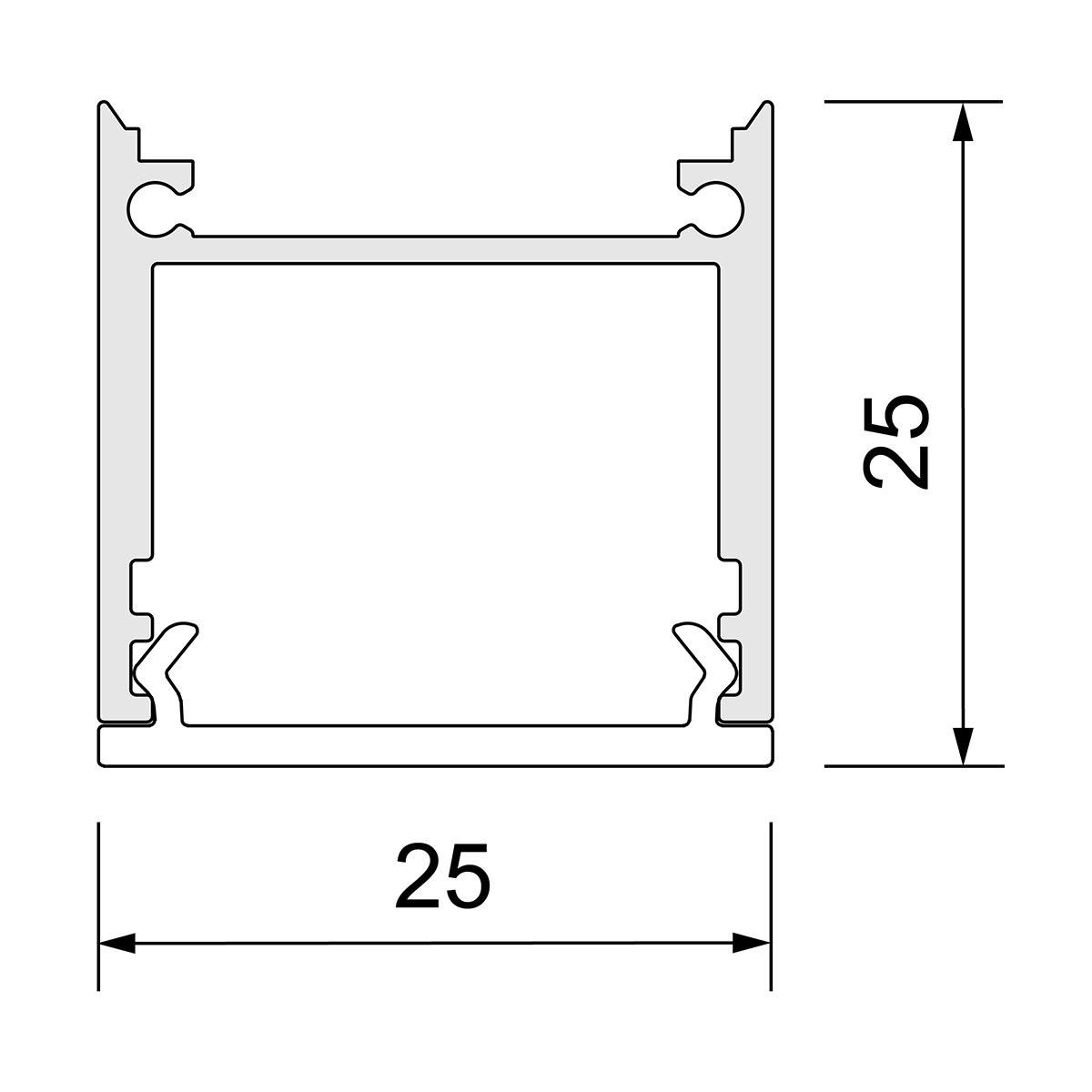 Produktgruppe: H-Profil, Linea 25 High, Farbe/Finish: eloxiert, Material: Aluminium, Länge: 3003 mm, Breite: 25 mm, Höhe: 23 mm