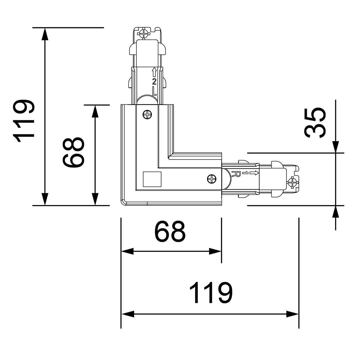Produktgruppe: L-Verbinder, Unex, Ausführung: Erdung aussen, Farbe/Finish: weiss, RAL-Farbe: 9010, Spannung PRI: 220-250 V, Frequenz PRI: 50/60 Hz