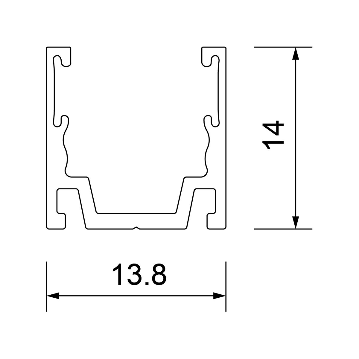 Produktgruppe: Montageprofil, Nex Flex F23 LED, Material: Alu-Kunststoff, Länge: 20 mm, Breite: 13.8 mm, Höhe: 14 mm