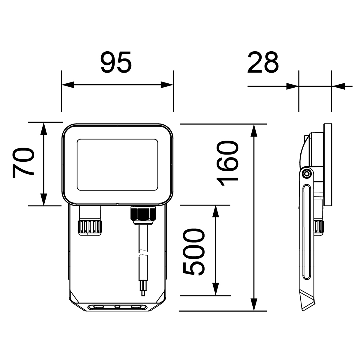 Produktgruppe: Scheinwerfer, Flood LED, Ausführung: 10 W, Ausrichtbarkeit: schwenkbar, Farbe/Finish: schwarz, RAL-Farbe: 9004, Treiber: inkl. Treiber, Lichtsteuerung: Ein/Aus, Pst: < 1, SVM: < 0.4, Lichtstrom: 1000 lm, Systemleistung: 10 W, Lichtausbeute: 100 lm/W, Farbtemperatur: 3000 K warmweiss, CRI: 80, Farbkonsistenz SDCM: 4, Abstrahlwinkel: 100 °, Anzahl Lichtquellen: 1, Anteil Direktlicht: 100 %, Energieeffizienzklasse: E, Lebensdauer LED: 40'000h L70, Schutzklasse: 1, IP-Schutzklasse: IP65, IK-Schutzklasse: IK06, Material: Aluminium, Spannung PRI: 220-240 V, Frequenz PRI: 50/60 Hz, Anschlusskabel PRI, Typ: H05RN-F, Anschlusskabel PRI, Länge: 500 mm, Anschlusskabel PRI, Querschnitt: 3 x 1.0 mm²