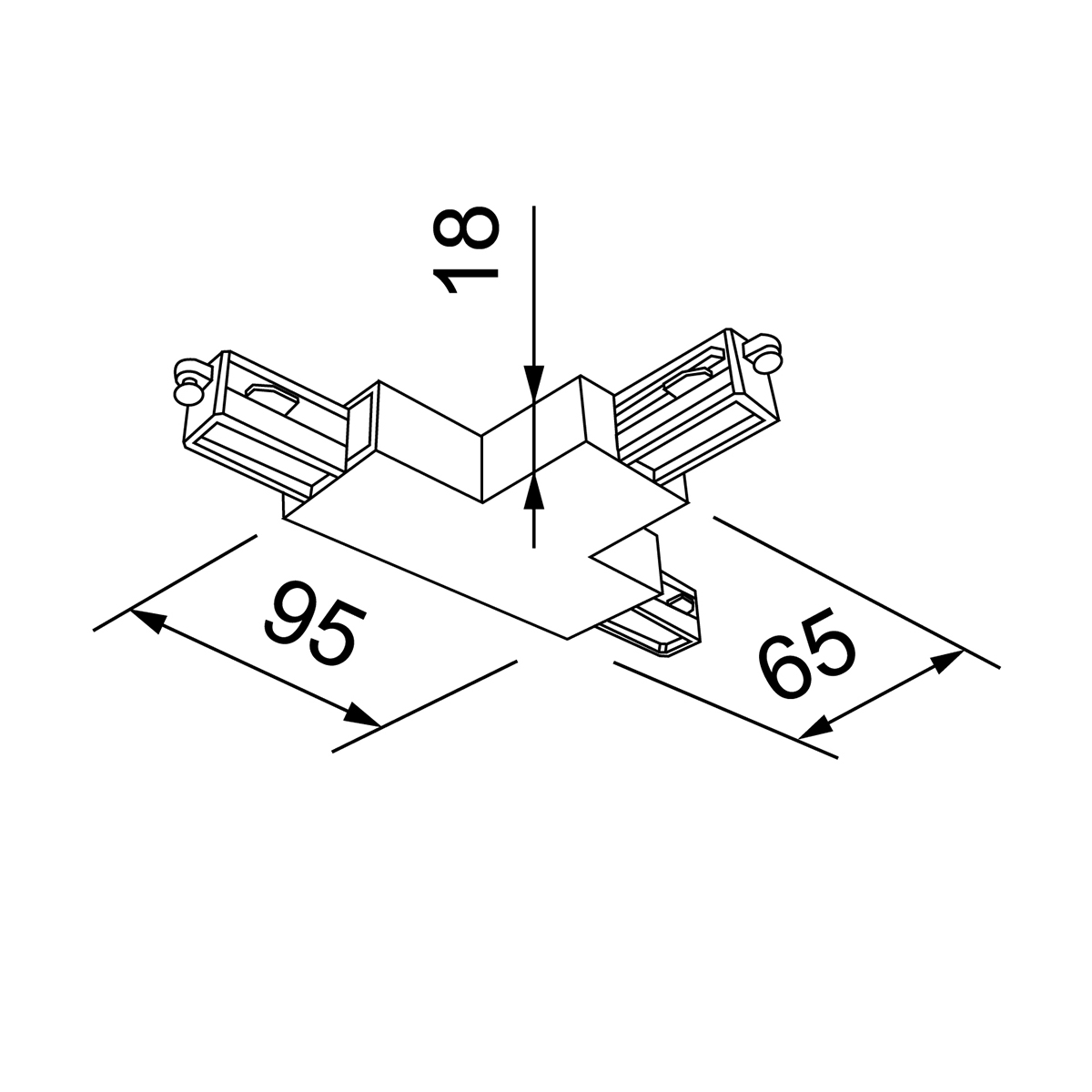 Produktgruppe: T-Verbinder, Unex One, Farbe/Finish: schwarz, matt, RAL-Farbe: 9005, Schutzklasse: 1, IP-Schutzklasse: IP20, Material: Polycarbonat, Spannung PRI: 220-250 V, Frequenz PRI: 50/60 Hz, Max. Belastung pro Stromkreis: 16 A, Länge: 95 mm, Breite: 65 mm, Höhe: 18 mm
