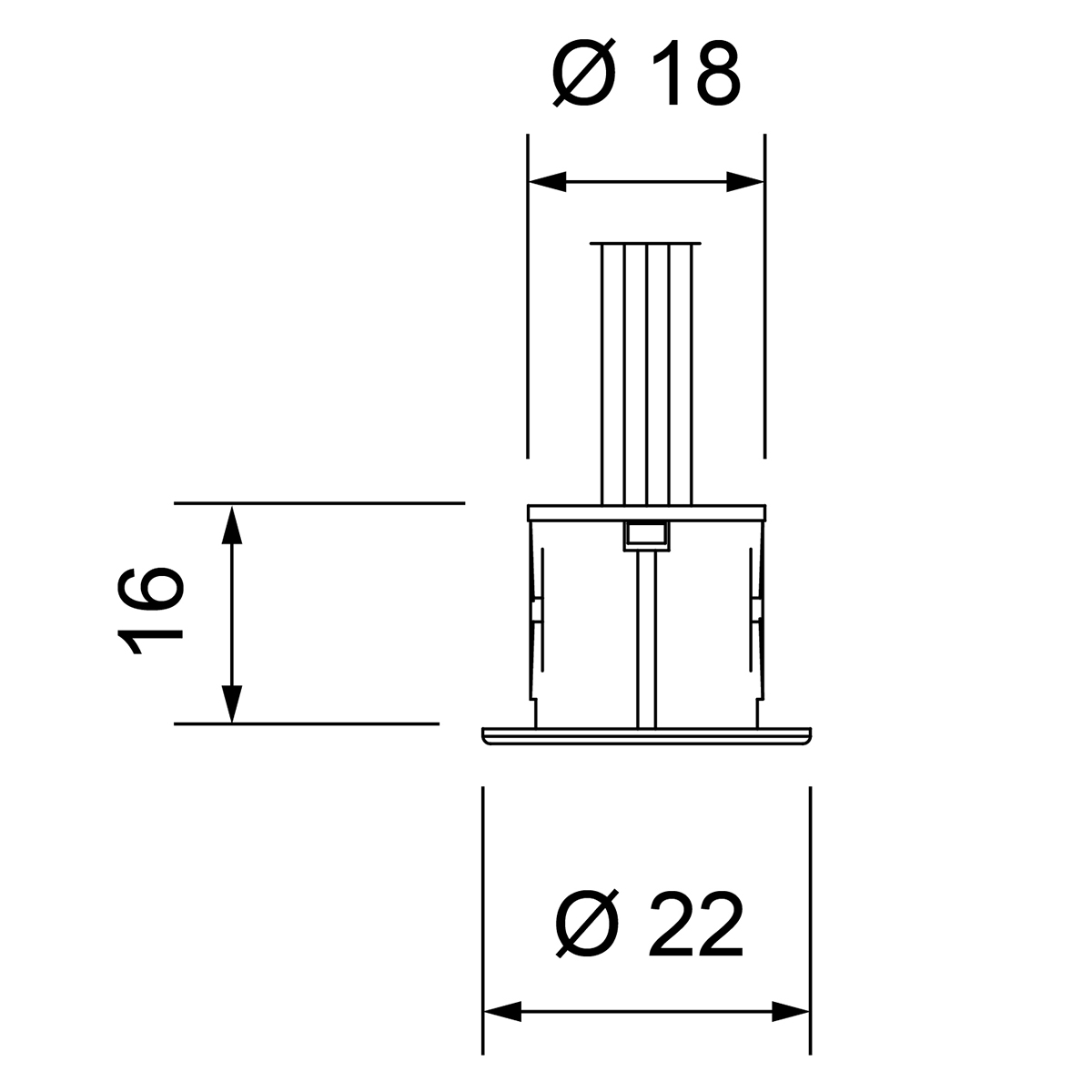 Produktgruppe: Touch-Dimmer, Multiline, Dimmtechnik: PWM, Material: Aluminium, Spannung PRI: 12-24 V dc, Frequenz PRI: 0 Hz, Spannung SEC: 12-24 V dc, Durchmesser: 22 mm, Bohrloch-Ø (max): 18 mm, Einbautiefe 1: 16 mm