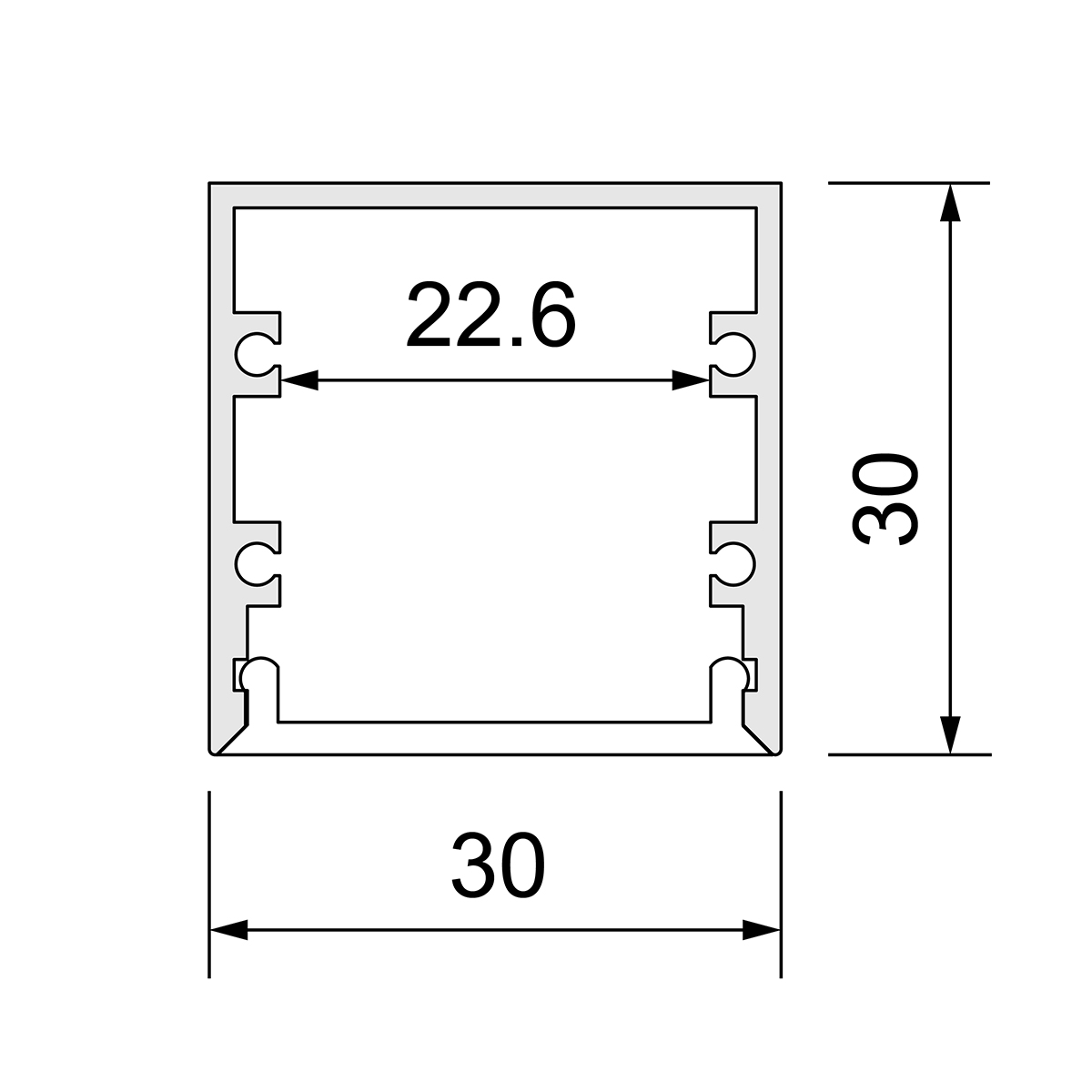 Produktgruppe: U-Profil, Basic 30, Farbe/Finish: eloxiert, Material: Aluminium, Länge: 3003 mm, Breite: 30 mm, Höhe: 30 mm