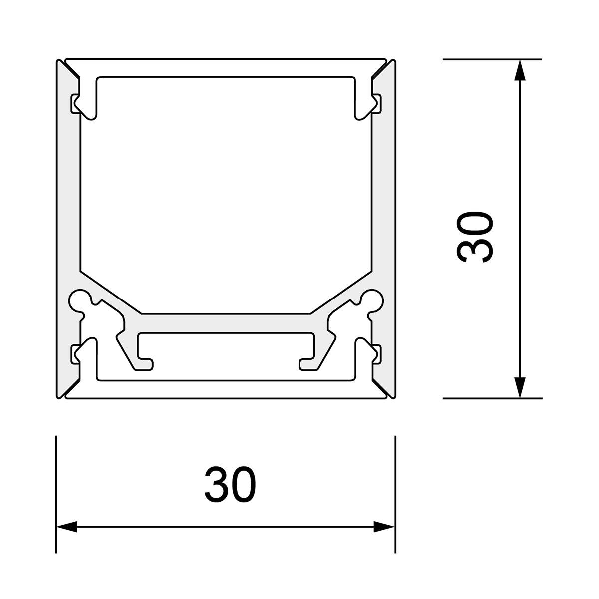 Produktgruppe: U-Profil, Linea 30 II, Farbe/Finish: eloxiert, Material: Aluminium, Länge: 3003 mm, Breite: 30 mm, Höhe: 30 mm