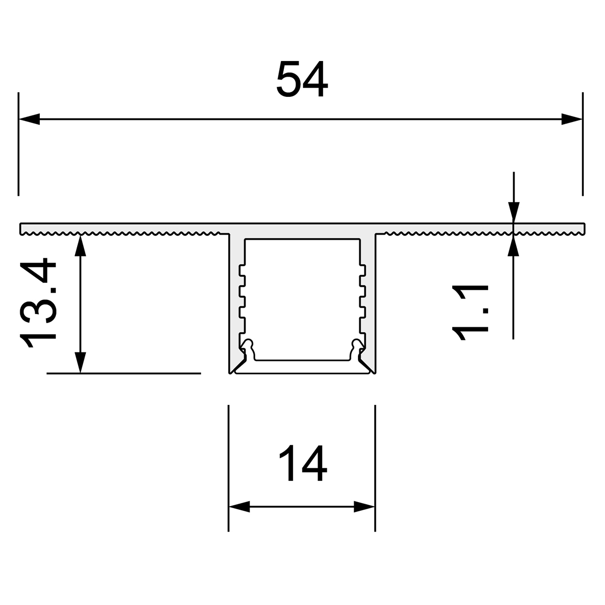 Produktgruppe: U-Profil für Gipsdecken, Slick Gp, Farbe/Finish: eloxiert, Material: Aluminium, Länge: 3003 mm, Breite: 54 mm, Höhe: 14.5 mm